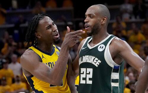 - Pacers e Bucks danno vita alla miglior partita della serie, con gli ospiti che riescono a rimontare dal -19 accumulato nel primo quarto fino a mettere la testa avanti a inizio quarto periodo. Da lì in poi le due squadre procedono punto a punto fino a forzare il supplementare, a cui si arriva grazie a un miracoloso canestro da tre punti di Khris Middleton senza che Pascal Siakam riesca a rispondere. Anche nell’overtime Middleton si inventa una super tripla per la parità, ma Tyrese Haliburton trova la risposta giusta