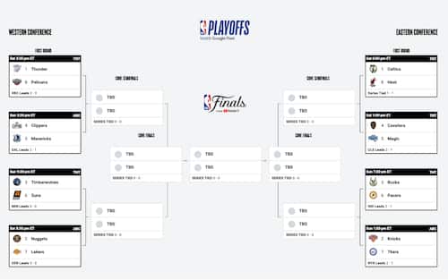 - Questa la situazione nelle due conference dopo le partite della notte, con due serie a Ovest già sul 3-0 e una sul 2-0 mentre a Est tutte le squadre hanno vinto almeno una partita. Stasera alle 19 in campo Orlando e Cleveland per gara-3 (diretta Sky Sport NBA con commento di Francesco Bonfardeci e Tommaso Marino), si giocano le gare-3 tra New Orleans e Oklahoma City (serie sul 2-0 per i Thunder) e tra Miami e Boston (serie in parità sull’1-1), mentre i Lakers dovranno cercare di evitare l’eliminazione contro Denver