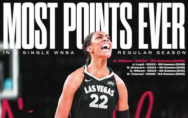 Nella supersfida contro le Indiana Fever di Caitlin Clark, la miglior giocatrice del mondo A’ja Wilson ha realizzato i punti 940 e 941 della sua stagione, diventando la miglior realizzatrice nella storia della WNBA su singolo anno. Con ancora quattro partite da disputate quota 1.000 non è distante, così come il terzo titolo di MVP della carriera. Il tweet con cui la sua squadra l’ha celebrata, però, non le è andato proprio a genio