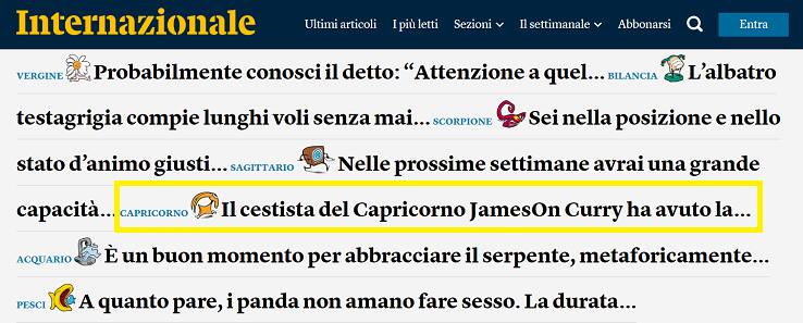 Non accade spesso che un giocatore NBA venga citato all'interno di un oroscopo (e uno dei più popolari al mondo: quello di Brezsny viene pubblicato in oltre 120 testate in tutto il mondo). Potrebbe non stupire essendo Curry, ma il Curry citato dall'astrologo americano non è Steph bensì un oscuro giocatore scelto nel 2007 che detiene un record molto curioso