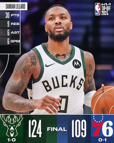 Le assenze di Joel Embiid e Paul George rendono la vita più semplice ai Bucks, che cominciano la stagione vincendo sul campo di una diretta concorrente. Ai padroni di casa infatti non bastano i 25 punti realizzati da Tyrese Maxey (ma con 10/31 al tiro) e i 21 di Kelly Oubre per tenere testa agli avversari, che scappano via nel secondo quarto con un parziale di 25-12 senza mai tornare sotto la doppia cifra di vantaggio nel resto della partita