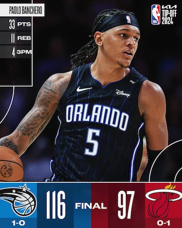 I Magic al contrario cominciano molto bene, tentando 27 triple nel solo primo tempo e 49 alla fine per aprire il più possibile il campo alle proprie stelle. Paolo Banchero è quello che ne approfitta maggiormente: 33 punti per lui all’esordio stagionale come solo Nick Anderson e Shaquille O’Neal prima di lui nella storia dei Magic, a cui aggiunge anche 11 rimbalzi e 4/8 dalla lunga distanza. Insieme a lui ci sono i 23 di Franz Wagner e i 18 di Gary Harris, ma soprattutto la difesa tiene gli avversari al 39% al tiro