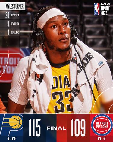 Comincia con una sconfitta l’esperienza di JB Bickerstaff sulla panchina dei Detroit Pistons, ma i Pacers hanno bisogno di un ultimo quarto da 33-19 per rimontare da -8 e vincere la partita. I 20 punti di Myles Turner uniti ai 19 a testa di Pascal Siakam e Benn Mathurin fanno la differenza per gli ospiti, riuscendo a contenere un Cade Cunningham da 28 punti (22 nel solo secondo tempo). I 15 errori al tiro su 20 tentativi dei padroni di casa nel quarto periodo hanno determinato la sconfitta di Detroit, che però può guardare a questa stagione con un po’ più di ottimismo