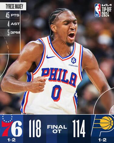 La prima metà di gara non è semplice per Tyrese Maxey, che appare stranamente rinunciatario e poco efficace in attacco. Il playmaker dei Sixers, però, si riscatta ampiamente nel secondo tempo, prendendosi sulle spalle la squadra e chiudendo con una prestazione da 45 punti, dove a pesare sono soprattutto i 9 segnati nel supplementare