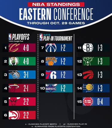 Cleveland e Boston continuano nel loro inizio di stagione perfetto, con Orlando che insegue a breve distanza. Inizio complicatissimo invece per Detroit e, a sorpresa, anche per Indiana e Milwaukee