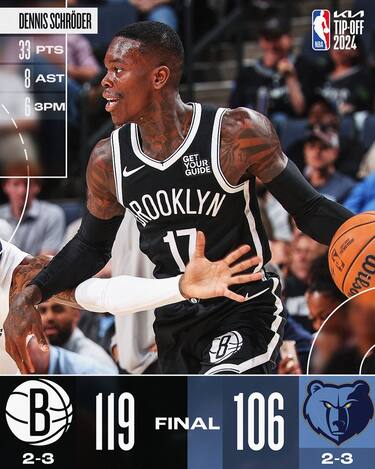 I Grizzlies crollano nel 4° quarto, chiuso con un parziale di 28-16 per Brooklyn, sprecano una serata eccellente da parte di Jaren Jackson Jr. (30 punti e 10/12 dal campo) e non approfittano di una sfida sulla carta ampiamente alla loro portata. Memphis paga carissime le 22 palle perse totali, che aprono spazi per le incursioni in contropiede di Dennis Schroeder (33 punti) e Cam Thomas (19), poi rivelatesi fatali