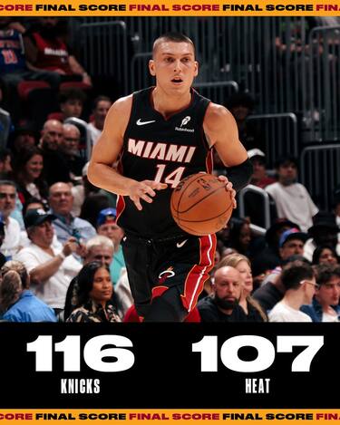 La sfida tra due squadre che ambiscono ai piani alti della Eastern Conference si decide nel 3° quarto, quando Miami, fin lì più precisa e attenta in difesa, è avanti 70-57, ma subisce un parziale devastante di 30-10 con cui i Knicks mettono le mani sulla partita, senza più toglierle. Gli Heat pagano la serataccia al tiro di Terry Rozier (16 punti ma 5/14 dal campo) e un calo di energia evidente dopo l’intervallo lungo. New Yorktrova invece un Jalen Brunson capace di segnare 18 dei suoi 22 punti nel secondo tempo e un Mikal Bridges da 17 punti e 6 rimbalzi