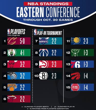Cleveland sconfigge i Lakers e rimane l'unica squadra imbattuta della Eastern Conference, Boston subisce la sua prima sconfitta a Indiana e deve cedere la testa della classifica. Prima vittoria invece per Detroit, che però rimane ancora ulitma a Est