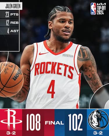 Reduci dall’esaltante vittoria contro Minnesota, i Mavs si presentano al derby texano con Houston con una partenza troppo lenta, lasciando agli avversari il campo aperto per il contropiede. I Rockets, guidati da un ottimo Jalen Green (23 punti e 12 rimbalzi) ne approfittano, guadagnandosi subito un vantaggio in doppia cifra già nel 1° quarto che poi sapranno difendere dai tentativi di rimonta dei padroni di casa. Dallas fatica da tre, tirando complessivamente 10/30 dalla lunga distanza, e paga un gap in termini di fisicità apparso evidente lungo tutta la gara