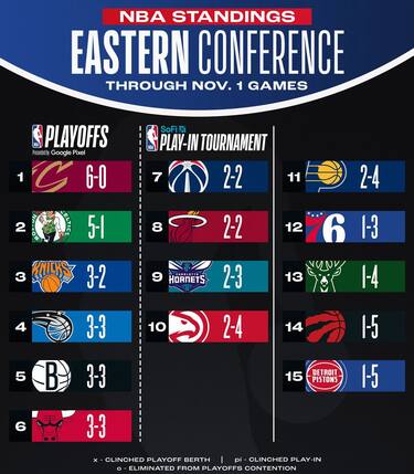 Cleveland batte Orlando e rimane l'unica squadra imbattuta della Eastern Conference, Boston insegue i Cavs in seconda posizione. Detroit torna invece fanalino di coda solitario dopo aver perso in casa per mano dei Knicks