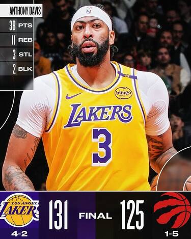 Non c’è dubbio che il migliore tra i Lakers in questo avvio di stagione positivo sia stato e continui a essere Anthony Davis, che anche a Toronto è grande protagonista con una doppia doppia da 38 punti e 11 rimbalzi. Il lungo gialloviola fa il vuoto nel pitturato, chiudendo con un eccellente 14/20 dal campo