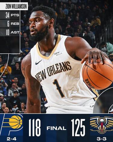 In partite come quella contro i Pacers, Zion Williamson fa vedere perché, nonostante una carriera fin qui limitata dagli infortuni, viene considerato una stella di prima grandezza. La prova dell’ala dei Pelicans è praticamente perfetta: 34 punti, 10 rimbalzi, 6 assist, 2 palle rubate e 14/20 dal campo