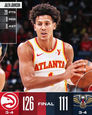 A fare davvero la differenza nella netta vittoria degli Hawks a New Orleans è un Jalen Johnson che si conferma giocatore completo e allo stesso tempo spettacolare. L’ala di Atlanta chiude sfiorando la tripla doppia con 29 punti, 9 rimbalzi e 8 assist, oltre a diverse giocate che fanno saltare in piedi la panchina degli ospiti