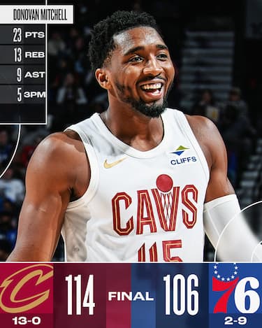 I Sixers in back-to-back sono privi di Joel Embiid e Paul George, ma danno filo da torcere fino all’ultimo alla squadra più in forma della lega. Donovan Mitchell infatti deve segnare 11 dei suoi 23 punti negli ultimi tre minuti di partita per spingere i suoi alla 13^ vittoria consecutiva, solo la sesta squadra in tutta la storia della NBA a partire con un record di 13-0. Sono 13 anche i rimbalzi catturati da Mitchell insieme a 9 assist, a cui si aggiungono i 25 punti di Darius Garland per infliggere ai Sixers la nona sconfitta nelle prime 11 partite stagionali