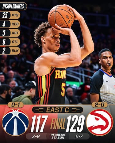 Washington parte bene nella trasferta di Atlanta, ma l’efficacia degli Wizards dura solo un quarto. Nel 2° quarto, infatti, gli Hawks piazzano un parziale di 30-11 che di fatto chiude la partita già all’intervallo lungo. Agli ospiti non basta un Kyle Kuzma da 24 punti e 9 rimbalzi, perché dall’altra parte c’è un Dyson Daniels(25 punti e 6 palle recuperate) sempre più convincente e un Jalen Johnson (18 punti, 13 rimbalzi e 7 assist) ormai protagonista immancabile nell’ottimo avvio di stagione di Atlanta
