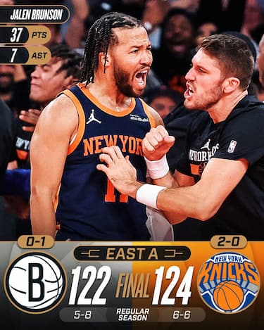 Quando la partita sembra essere incredibilmente sfuggita dalle mani dei Knicks, a fare esultare ancora una volta i tifosi sugli spalti del Madison Square Garden è Jalen Brunson. È sua la tripla del controsorpasso a 6 secondi dalla fine, che suggella una prestazione in cui il playmaker di New York segna 16 dei suoi 37 punti nel 4° quarto, quando è quasi l’unico tra i padroni di casa a resistere al tentativo di rimonta dei Nets