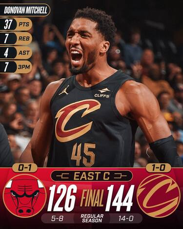 I Cavs si trovano ad affrontare Chicago senza Evan Mobley, assente per un lieve problema di salute, ma si confermano del tutto ingiocabili in questo inizio di stagione. La 14° vittoria consecutiva di Cleveland prende corpo nel 4° quarto e arriva sulle ali di prestazioni ancora una volta ottime da parte di Darius Garland (29 punti e 9 assist) e Jarrett Allen (24 punti e 10 rimbalzi), oltre che di un Caris LeVert autore di 22 punti in uscita dalla panchina. Contano davvero poco i 29 punti di Coby White e i 25 di Nikola Vucevic, i migliori per i Bulls