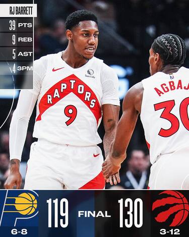 Tra le poche note positive di un inizio di stagione complicatissimo per i Raptors, c’è senza dubbio RJ Barrett. Anche contro Chicago, l’ex Knicks si conferma leader della squadra e manda a referto una prestazione da 39 punti, 9 rimbalzi e 5 assist, tirando 13/21 dal campo e 4/8 da tre