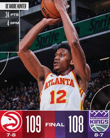 La giocata finale di Daniels, oltre a regalare la vittoria ad Atlanta, rovina la serata potenzialmente da incorniciare di Keon Ellis. La guardia dei Kings entra dalla panchina e segna il suo career high con 33 punti e un incredibile 9/15 al tiro dalla lunga distanza, risultando anche freddissimo dalla lunetta nel 4° quarto, ma la sua prestazione non basta a Sacramento