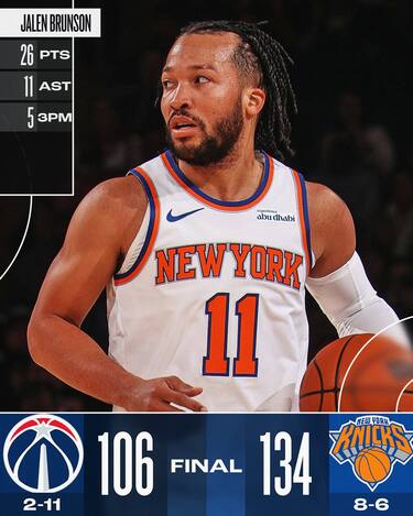 Quella tra Knicks e Wizards si preannunciava come una sfida poco equilibrata sulla carta, e il campo ha confermato che tra le due squadre esiste una differenza al momento enorme. New York mette le mani sulla partita già dal 1° quarto e poi gestisce senza problemi, Jalen Brunson gioca poco più di 30 minuti ma va comunque in doppia doppia con 26 punti e 11 assist, Cameron Payne approfitta dello spazio concessogli e chiude invece con 17 punti e 7 assist. Per Washington la nota positiva arriva dal rookie Bub Carrington, che parte in quintetto e segna 18 punti con anche 4 rimbalzi