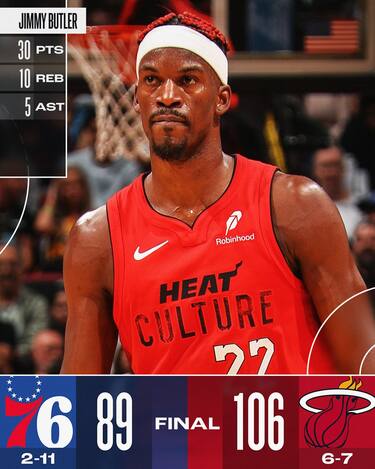 Rientrato dopo lo stop per un problema alla caviglia destra, Jimmy Butler marchia la partita da ex contro i Sixers con una prestazione da 30 punti, 10 rimbalzi e 5 assist, dimostrandosi inoltre l’unico tra gli Heat a vedere il canestro con continuità tirando 8/12 dal campo e procurandosi anche 13 liberi, tutti realizzati