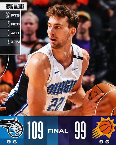Nei Magic che dopo il pesante infortunio della loro stella Paolo Banchero sembrano aver trovato nuove risorse, il ruolo di protagonista se l’è preso Franz Wagner. Anche a Phoenix il berlinese è il migliore in campo e trascina i suoi alla 6° vittoria consecutiva con 32 punti, 8 rimbalzi e 5 assist e tira anche 4/8 da tre