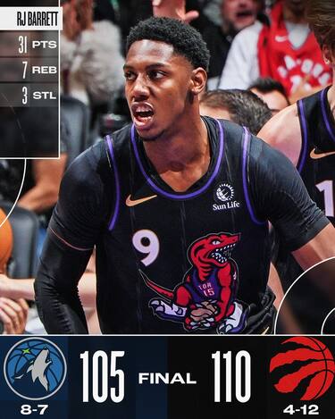Con il rientro di Barnes, per Toronto sembra potersi aprire una nuova fase, ma fin qui a tenere in piedi la squadra è stato RJ Barrett. Anche contro Minnesota, l’ex Knicks è il migliore dei suoi con 31 punti, 7 rimbalzi, 3 assist, 3 palle rubate e un eccellente 10/14 al tiro