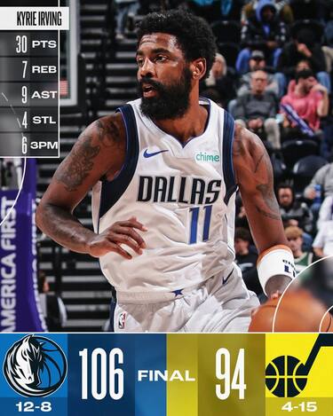Senza Doncic a comandare l’attacco di Dallas, gran parte delle responsabilità offensive dei Mavs passano dalle mani di Kyrie Irving. E il veterano non delude nemmeno nella trasferta di Salt Lake City, dove manda a referto una partita da 30 punti, 9 assist e 7 rimbalzi, ricacciando indietro ogni tentativo di rimonta dei Jazznel 4° quarto