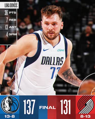 A fronte delle tante assenze in casa Mavs - Kyrie Irving, Klay Thompson, Dereck Lively e Naji Marshall - c'è un ritorno importante, anzi, fondamentale: quello di Luka Doncic, assente nelle ultime cinque gare per un problema al polso. E lo sloveno non perde tempo, caricandosi la squadra sulle spalle e guidando Dallas al 4° successo in fila con 36 punti, 13 assist e 7 rimbalzi, frutto di un ottimo 15/24 al tiro con 4/10 da tre. Per i texani benissimo anche Grimes, autore di 28 punti con 5/7 dall'arco (Dallas ha tirato il 50% dalla lunga distanza), mentre un super Anfernee Simons, che segna 24 dei suoi 27 punti nel solo terzo quarto, non basta ai Blazers, nonostante una serata da 9/11 al tiro con 6/8 da tre