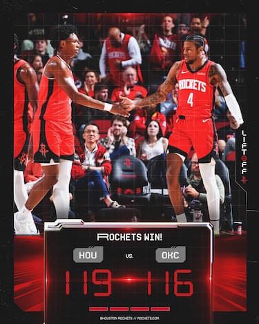Ci vuole un canestro di Dillon Brooks a 33 secondi dalla fine per spezzare la parità e dare ai Rockets il vantaggio decisivo, in una sfida tra la numero uno e la numero due a Ovest che conferma le ambizioni dei texani, giunti al terzo successo in fila e al quinto nelle ultime sei gare. Una vittoria ottenuta fermando a 4 la striscia positiva dei Thunder, nonostante il quarto trentello consecutivo di Shai Gilgeous-Alexander, autore di 32 punti con 10/19 al tiro. Ma oltre a un fenomenale VanVleet, coach Udoka ha un Sengun a un soffio dalla tripla doppia (20 punti, 14 rimbalzi e 9 assist) e Brooks a quota 16 con canestri importanti
