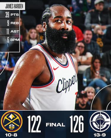 Una partita da ricordare, quella di James Harden contro i Nuggets. Una vittoria, innanzitutto. La tripla n°3.000 segnata in carriera (unico oltre a Steph Curry a raggiungere questo traguardo), in una serata da 6/15 dalla lunga distanza. Una gara da 39 punti con l'assoluta perfezione dalla lunetta (13/13). Il "Barba" riporta i Clippers al successo dopo il ko nel Minnesota: L.A. ha vinto 7 delle ultime 9 gare disputate