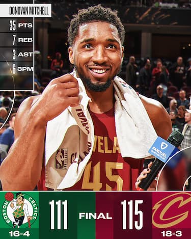 Il quarto quarto fenomenale dei Cavs porta una firma d’autore, quella di Donovan Mitchell, che segna 20 dei suoi 35 punti proprio nell’ultima frazione, quando sembra non poter sbagliare mai: 6/6 dal campo (compreso un perfetto 4/4 dall’arco) per lui, che aveva iniziato il primo tempo tirando solo 2/8 ma che nel secondo tempo colleziona 30 dei suoi 35 punti finali. Chiude con 12/21 al tiro (e 6/11 da tre) e aggiunge anche 7 rimbalzi e 2 recuperi alla sua serata, ben spalleggiato da Garland, autore di 22 punti e 8 assist