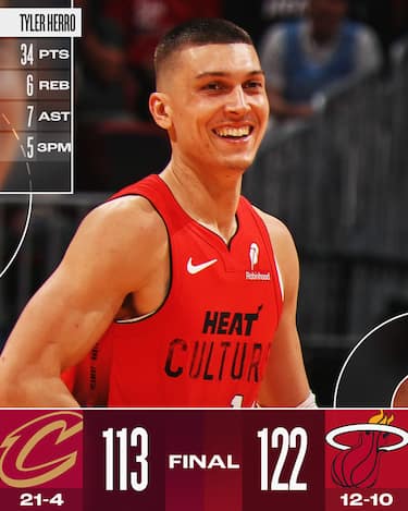 La Southeast Division si conferma la bestia nera dei Cavs: dopo le due sconfitte contro Atlanta, la squadra col miglior record NBA cade anche contro Miami, portando a 5-3 il proprio record contro le squadre di quella division a fronte del 16-1 con cui hanno regolato il resto della NBA. I Cavs perdono Evan Mobley nel primo tempo per una distorsione alla caviglia e pagano la pessima serata di Donovan Mitchell (12 punti con 5/16 al tiro), ma soprattutto si trovano davanti un avversario in grande forma come gli Heat in questo momento della stagione