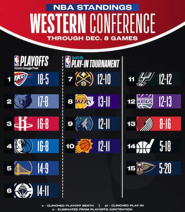 Memphis e Houston continuano a correre alle spalle di OKC, così come Golden State che sale al quinto posto a Ovest. Denver e Lakers insidiano la sesta posizione dei Clippers, mentre Phoenix scivola pericolosamente al decimo posto — con sola mezza gara di vantaggio sugli Spurs undicesimi