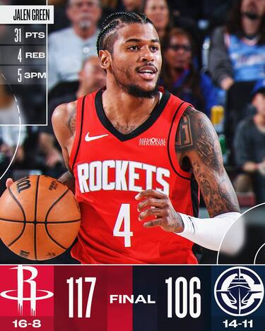 Senza il playmaker titolare, è un Jalen Green da 31 punti a guidare un quintetto tutto in doppia cifra per i Rockets, trovando anche i 22 con 8 rimbalzi e 4 assist di Amen Thompson, i 19 di Dillon Brooks, e le doppie doppie di Jabari Smith Jr (13+12) e Alperen Sengun (11+10). I Rockets ritrovano così la vittoria e salgono al terzo posto a Ovest riagganciando Dallas alle spalle di OKC e Memphis