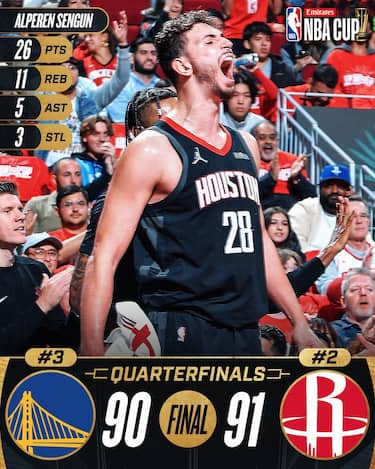 In una partita complicata, dove a pesare sono più gli errori individuali che le grandi prestazioni, Alperen Sengun si conferma la colonna portante di Houston. Nella vittoria che porta i Rockets alle Final Four di Emirates NBA Cup ci sono soprattutto i suoi 26 punti, 11 rimbalzi e 5 assist e c’è anche la sua voglia di battagliare contro Draymond Green nei possessi finali che decidono la gara