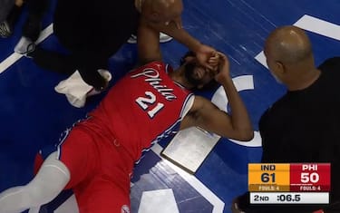 Quando mancano 6 secondi all’intervallo lungo, Joel Embiid ha una buona posizione in area e sull’errore di Haliburton sembra avere le mani sulla palla, ma Bennedict Mathurin prova strappare il rimbalzo d’attacco e colpisce inavvertitamente il centro dei Sixers al volto. Embiid resta a terra e non rientrerà più nella partita nel secondo tempo, e al termine dell’incontro Philadelphia farà sapere che il risultato dello scontro conMathurin è una frattura nasale che potrebbe tenere fuori il camerunese per un periodo da valutare