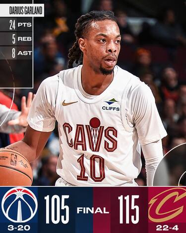 Cleveland rispetta il pronostico, batte Washington e ottiene la 22° vittoria della sua fin qui eccellente regular season. Il successo sugli Wizards, però, è meno semplice del previsto, perché gli ospiti rimangono a lungo in partita grazie alla prestazione da 27 punti, 6 rimbalzi e 5 assist con 10/18 al tiro di un ottimo Bilal Coulibaly. Per avere la meglio, ai Cavs servono i 24 punti di Darius Garland, i 20 di Donovan Mitchell e la doppia doppia da 21 punti e 11 rimbalzi di Jarrett Allen