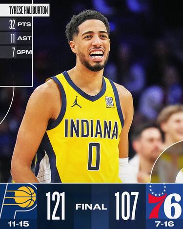 Altra serata storta nel complicatissimo avvio di stagione di Philadelphia, che nella sfida casalinga controIndiana perde contatto con l’avversario già nel 1° quarto senza più riuscire a recuperare e torna a perdere dopo una mini-striscia di due vittorie consecutive. I Pacers trovano 23 punti e 8 rimbalzi con 9/11 dal campo da un ottimo Pascal Siakam, mentre Obi Toppin ne aggiunge 20 con anche 8 rimbalzi entrando dalla panchina. Servono poco ai Sixers i 22 punti di Tyrese Maxey, l’unico a salvarsi tra i padroni di casa