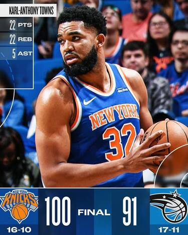 I Knicks portano a casa la vittoria con la difesa e con i rimbalzi, toccando anche il +16 nel quarto periodo prima di chiudere definitivamente i conti grazie ai 31 punti di Jalen Brunson e la doppia doppia da 22 punti e 22 rimbalzi di Karl-Anthony Towns. La panchina di New York viene surclassata da quella dei padroni di casa (48-11) ma i titolari fanno ampiamente il loro dovere, concedendo la doppia cifra solamente a Da Silva nel quintetto base dei Magic che si schiantano sui loro problemi offensivi (9/30 da tre) senza Wagner e Banchero