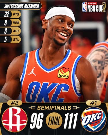 Sono la miglior squadra della Western Conference, record alla mano (20-5) e quindi la testa di serie n°1 a Ovest per la NBA Cup, dove hanno perso un solo incontro (in casa degli Spurs, nella seconda delle quattro gare del girone) e vinto gli altri cinque. In generale cavalcano una striscia di 9 vittorie nelle ultime 10 partite, grazie a quella che è la miglior difesa NBA (103.1 punti concessi a partita su 100 possessi, tengono gli avversari al 42.4% al tiro) come dimostrato nelle sfide a eliminazione diretta contro le due squadre texane, prima i Mavs e poi i Rockets. Shai Gilgeous-Alexander in 6 gare di NBA Cup viaggia a 32.2 punti di media, e 32 è stato anche il suo bottino in semifinale: a questa squadra, ha detto, sognerebbe di "aggiungere Kobe Bryant", ma anche così i Thunder fanno veramente paura a tutti