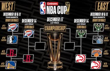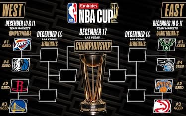 Un anno fa, era il dicembre 2023 e si parlava di NBA In-Season Tournament (quello era il nome ufficiale, oggi ribattezzato in NBA Cup). Questo, invece, era il tabellone emerso dalla fase a gironi, con gli incroci dei quarti di finale tra le quattro squadre qualificate a Est e le quattro qualicate a Ovest