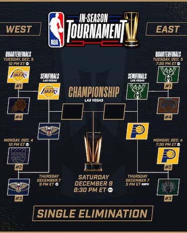 Delle quattro squadre che l'anno scorso sono arrivate a Las Vegas a giocarsi le semifinali hanno confermato la loro presenza soltanto i MILWAUKEE BUCKS: quest'anno non ci sono i Los Angeles Lakers (poi campioni), gli Indiana Pacers (grande sorpresa, capaci di arrivare in finale) e i New Orleans Pelicans (alle prese in questo avvio di campionato con tantissimi infortuni)
