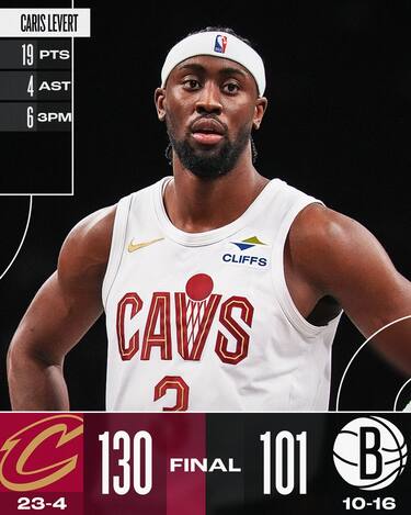 Il ritorno di Kenny Atkinson a Brooklyn, dove ha guidato i Nets per quattro stagioni, si trasforma in una vittoria persino più netta e facile di quanto fosse pronosticabile alla vigilia. Cleveland chiude il 1° quarto con un parziale devastante di 32-5 e poi controlla per il resto della partita, mandando ben 7 giocatori in doppia cifra tra cui spicca Evan Mobley con i suoi 21 frutto di un eccellente 7/9 dal campo. Tra i Nets, alla prima partita dopo la cessione a Golden State di Dennis Schroeder, si salva il solo Cam Johnson, autore di una prova da 22 punti e 5 assist