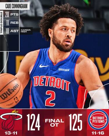 Cunningham non è l’unico a uscire dalla sfida tra Detroit e Miami con una tripla doppia, perché il tabellino personale di Jimmy Butler alla fine dice 35 punti, 19 rimbalzi e 10 assist, a cui il veterano aggiunge anche 4 palle rubate e una stoppata. La sua prestazione eccellente, però, non basta agli Heat per ottenere la 5° vittoria di fila