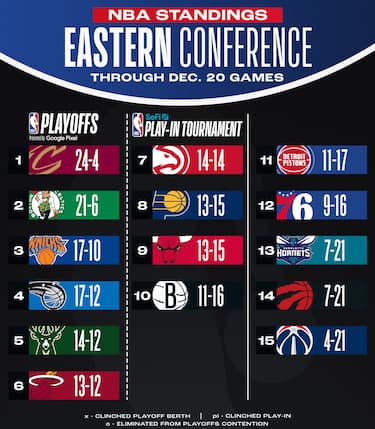 Cleveland allunga a 2.5 gare il proprio vantaggio su Boston in testa, mentre il ko di Milwaukee impedisce ai Bucks di avvicinarsi al quarto posto di Orlando, pur approfittando del ko di Miami per mantenere la quinta posizione. Sono quattro le sconfitte in fila di Charlotte: solo Toronto e New Orleans peggio in tutta la NBA