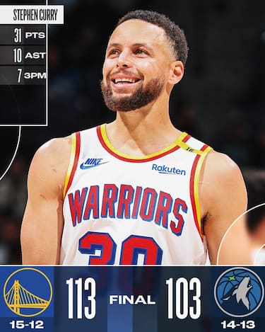 Dopo aver controllato la partita nella sua prima parte, Golden State rischia di subire il ritorno prepotente dei Timberwolves, ma nel momento più delicato trova come al solito la spinta decisiva di Steph Curry. 13 dei suoi 31 punti arrivano nel 4° quarto, dove la stella degli Warriors ne segna anche 11 consecutivi, chiudendo da migliore in campo con anche 10 assist e tirando 7/16 da tre