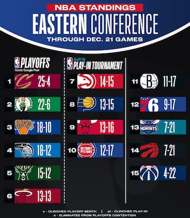Le prime cinque della classe nella Eastern Conference vincono tutte e si confermano in fuga verso il resto dell'Est, sconfitta pesante per Miami che rischia di scivolare in zona play-in mentre Washington continua a occupare l'ultima posizione in solitaria