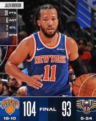 Quella ottenuta a New Orleans è una vittoria meno semplice del previsto per i Knicks, che dopo una prima parte di gara tutto sommato scialba si rimettono in moto nel 3° quarto e poi conducono fino alla fine. A suonare la carica ai suoi è come sempre Jalen Brunson, che segna 29 dei suoi 39 punti nel secondo tempo, chiudendo con anche 6 assist e un eccellente 13/19 dal campo