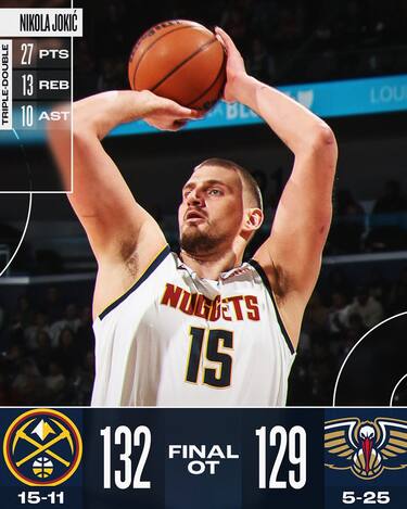 Inizia in maniera letargica la partita di Nikola Jokic, senza punti nei primi 21 minuti di gara. Poi però il serbo si scatena, prende il controllo della sfida contro Missi e i Pelicans e chiude con la nona tripla doppia stagionale, firmando una prestazione da 27 punti, 13 rimbalzi e 11 assist con 11/20 al tiro. Tutti suoi come detto i primi sei punti del tempo supplementare (vinto dai Nuggets 13-10), ma il centro di Denver mette anche la sua firma con 7 punti personali nel parziale di 15-2 del quarto quarto che rimette in gara la squadra del Colorado